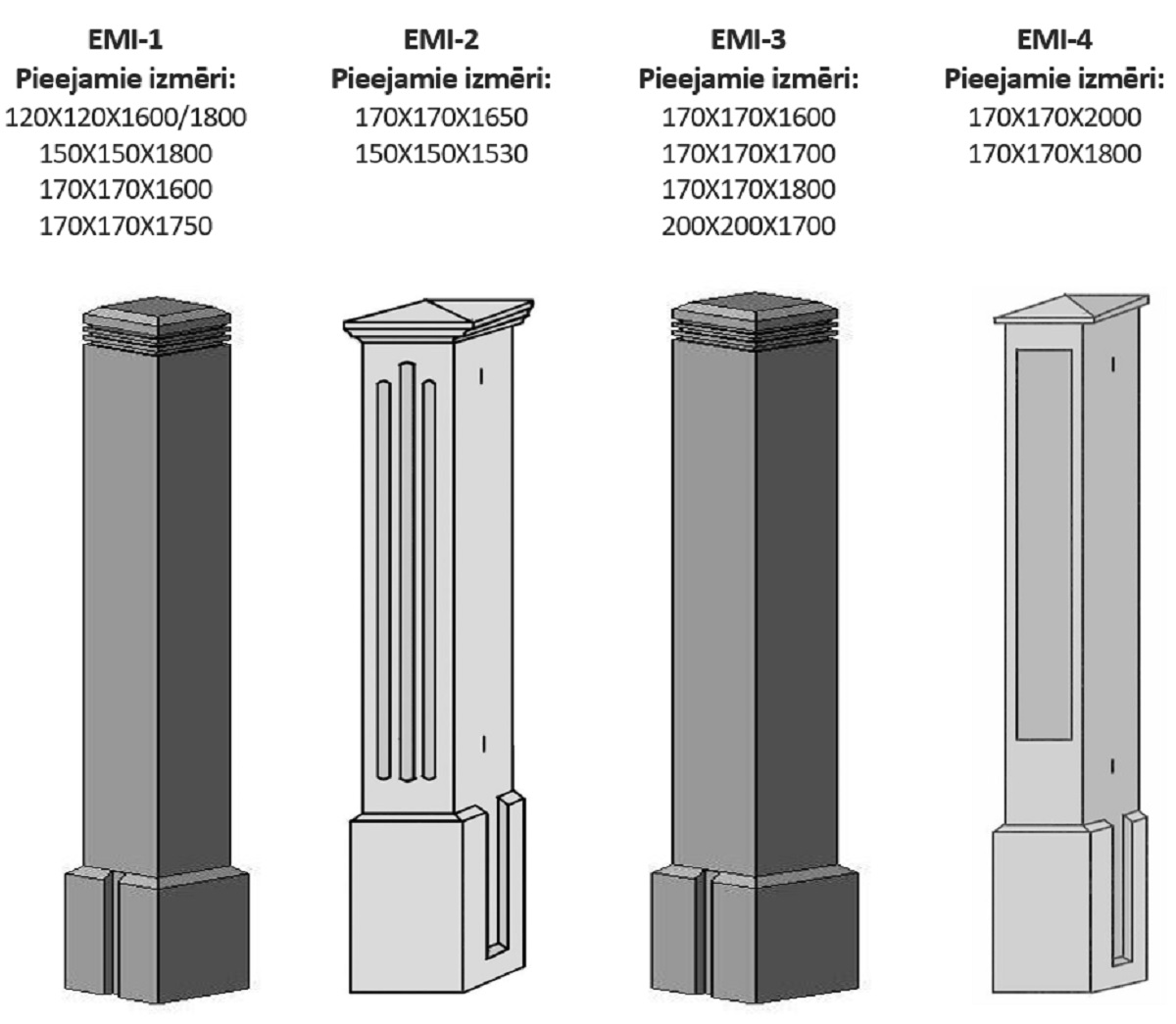 Plašu izvēli – no klasiskajiem līdz moderniem betona stabiem.